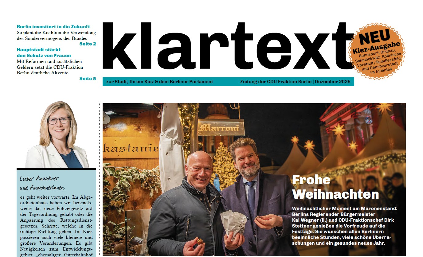 klartext - die Zeitung der CDU-Fraktion Berlin.