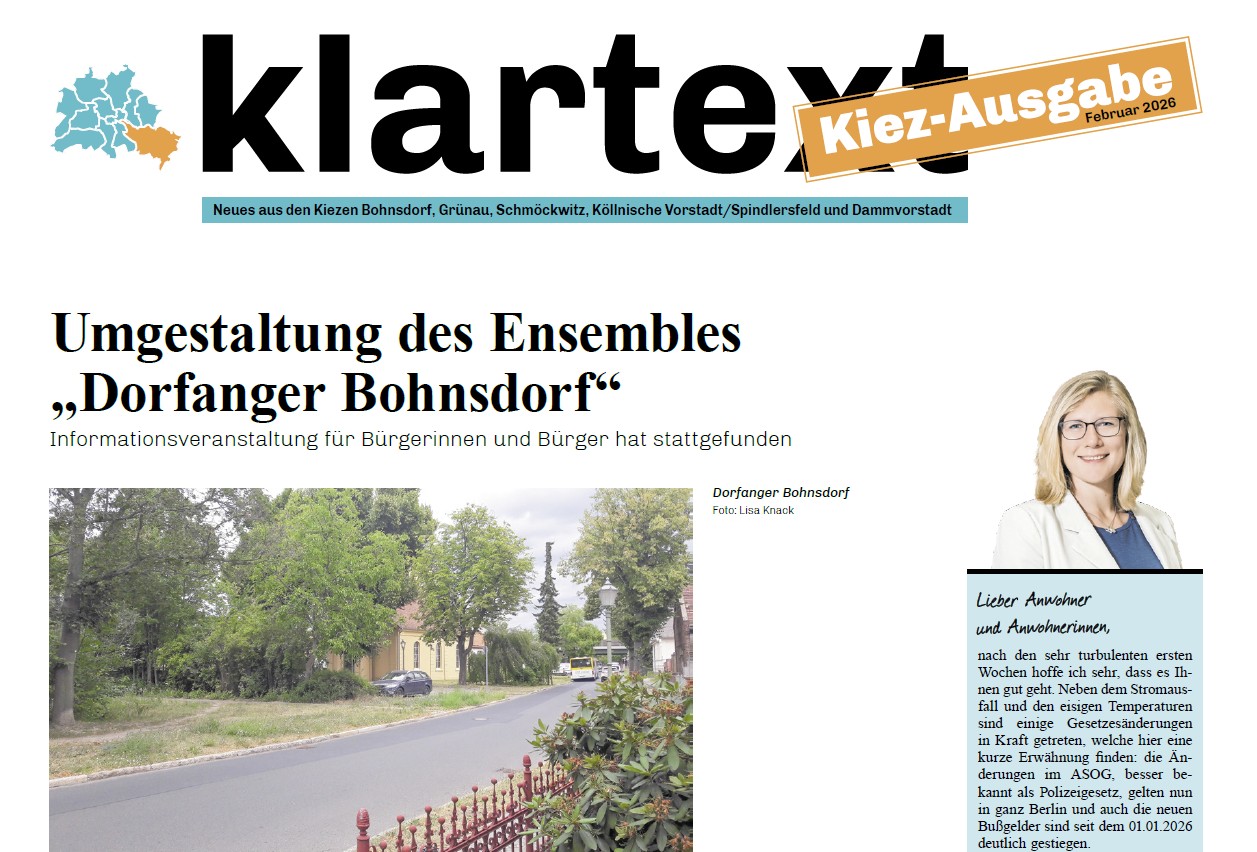 Klartext Kiez-Einleger Treptow-Köpenick Ausgabe Februar 2026