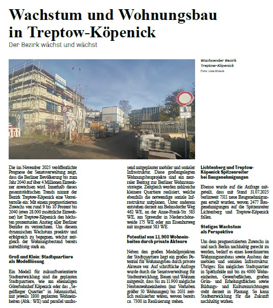 Wachstum und Wohnungsbau in Treptow-Köpenick